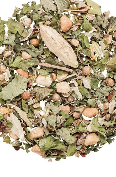 With its warm and spicy character, this tea helps balance the heavy, slow, and cool nature of Kapha, bringing lightness, clarity, and inner movement.